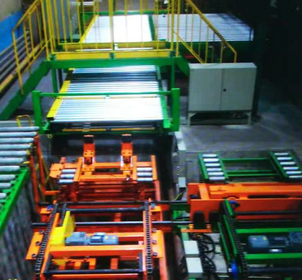 從擠出機排出的合格胎面通過定中及輸送輥床、單條胎面橫向定位組合傳送帶、多條胎面導(dǎo)出輸送帶、活動導(dǎo)入指型輸送輥道、液壓升降平臺,將胎面裝入格柵車。以備轉(zhuǎn)入成型機工序。