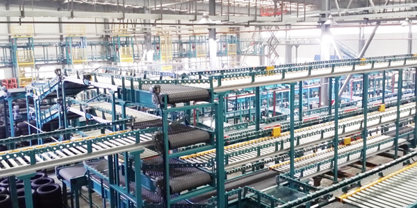 成品輪胎物流工序如下:硫化后的輪胎→硫化地溝線→ 冷卻緩存線→剪毛前緩存線→剪毛機(手動、自動)→外觀檢測前緩存線→外觀檢測設備→X光檢測緩存線→ X光檢測→ 均動檢測前緩存線→均動檢測設備→均動檢測合格品線→全息檢測環(huán)線→全息檢測設備→外觀復檢線。